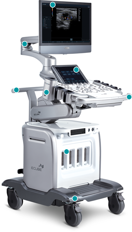 Alpinion E-CUBE 15 Platinum charakteryzuje się najwyższym poziomem ergonomii. Zobacz jakie cechy fizyczne tego aparatu USG wspierają lekarzy diagnostów w codziennej: